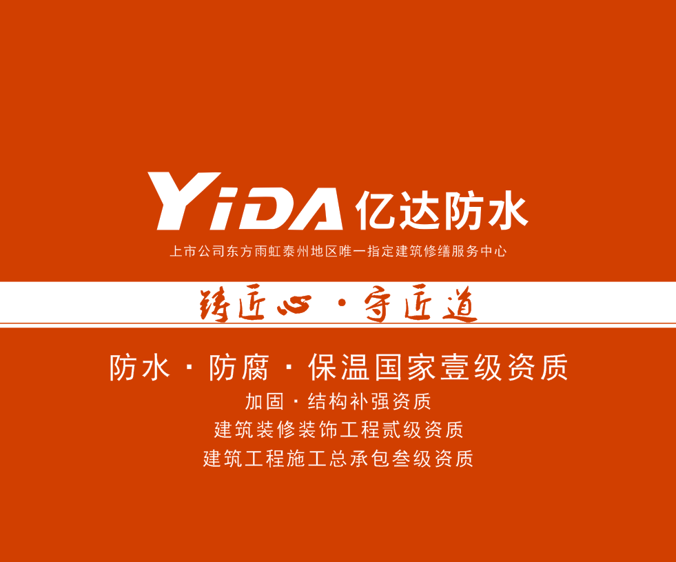 泰興市億達(dá)防水工程有限公司是一家具有國(guó)家建筑企業(yè)防水防腐保溫工程一級(jí)資質(zhì)、土建總承包三級(jí)資質(zhì)的企業(yè),坐落于江蘇省泰興市高新技術(shù)產(chǎn)業(yè)開(kāi)發(fā)區(qū)人才科技廣場(chǎng),成立于2012年,公司本著開(kāi)拓創(chuàng)新、不斷進(jìn)取的精神與恒大、碧桂園、榮創(chuàng)、中梁、新希望、融信、海亮等國(guó)內(nèi)知名房地產(chǎn)商及中國(guó)建筑、中冶建筑、中鐵建筑等國(guó)內(nèi)知名央企保持著長(zhǎng)期緊密合作,截止2018年底公司年產(chǎn)值突破1.5億元。公司經(jīng)營(yíng)防腐保溫工程施工、防水材料設(shè)計(jì)及銷(xiāo)售、建筑工程防水修繕等業(yè)務(wù),于2017年與國(guó)內(nèi)防水龍頭上市公司東方雨虹簽訂戰(zhàn)略合作關(guān)系,成立東方雨虹泰州服務(wù)中心。多年來(lái)憑著億達(dá)人的不懈努力,公司業(yè)務(wù)已遍及全國(guó)七省26市。