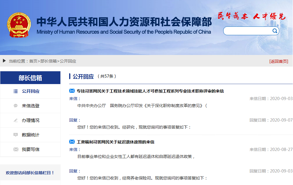 9月3日,人力資源與社會(huì)保障部官網(wǎng)“部長(zhǎng)信箱”欄目發(fā)布了一則“工資福利司答網(wǎng)民關(guān)于延遲退休政策的來(lái)信”。