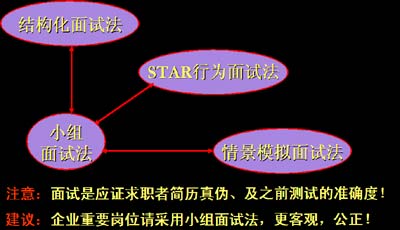 從上面圖表可以看出:高級(jí)人才面試,流程為王。千萬(wàn)千萬(wàn)別做拍腦袋的面試,由某一人人說(shuō)了算。借用一句廣語(yǔ):大家好,才是真的好!意思是大家都說(shuō)這個(gè)人好,才是真的好!因此,精準(zhǔn)的面試要做好人才標(biāo)準(zhǔn)建立,簡(jiǎn)歷精準(zhǔn)篩選,素質(zhì)精準(zhǔn)測(cè)評(píng)(學(xué)歷、資格、性格、能力、潛質(zhì)),精準(zhǔn)面試(行為面試法、結(jié)構(gòu)化面試、小組面試相結(jié)合),精確錄用(找對(duì)人,做對(duì)事,后續(xù)錄用也重要)。