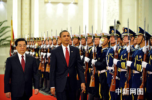 中國國家主席胡錦濤17日上午約9點(diǎn)50分在人民大會堂北大廳舉行儀式,歡迎美國第44任總統(tǒng)奧巴馬對中國進(jìn)行國事訪問。