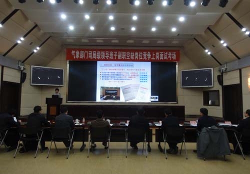 氣象部門司局級(jí)領(lǐng)導(dǎo)班子副職空缺崗位競爭上崗面試現(xiàn)場。(圖片來源:中國氣象局人事司)