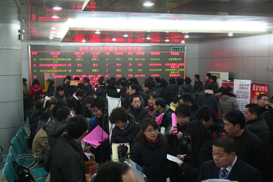 ?。苍拢保比丈衔纾汉锨?。江蘇省興化市人力資源市場內(nèi)熱氣騰騰:130多家企業(yè)在這里設(shè)攤擺點,廣招賢才。市人社局局長劉廣華告訴我們,這次2011年新春就業(yè)大型招聘會,共提供就業(yè)崗位5000多個,有6000多求職者進入市場,兩天時間已有3132應(yīng)聘者達(dá)成錄用意向。其中有2500人是返鄉(xiāng)的農(nóng)民工。