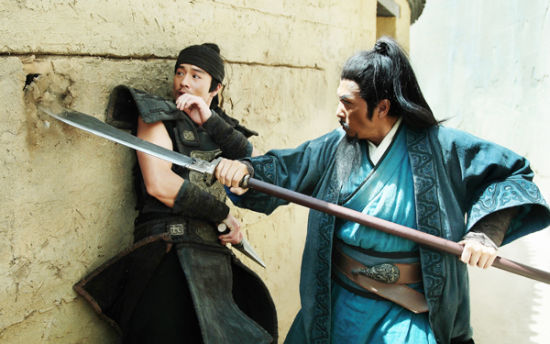 劇情解讀:關(guān)羽攜綺蘭出城時(shí),東嶺關(guān)部尉孔秀奉命將之格殺。但孔秀深諳關(guān)羽武功高強(qiáng),若硬拼必不是他的對手。因此,當(dāng)關(guān)羽駕車出城門時(shí),孔秀便玩了一招“欲擒故縱”:先要求出示通行令,讓關(guān)羽知道他只為安全而非故意“找茬”,隨后要求綺蘭下車,表面稱“不要為難小人”,實(shí)質(zhì)是在其后對決時(shí)將之抓走,最后再派人上車檢查,實(shí)質(zhì)確認(rèn)車上未暗藏武器。以上行為皆放松了關(guān)羽的戒備,繼而孔秀才由“文”變“武”,下令伏兵動手。