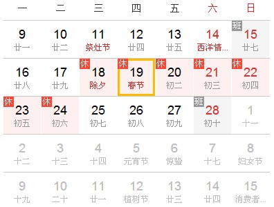二、春節(jié):2月18日至24日放假調(diào)休,共7天。2月15日(星期日)、2月28日(星期六)上班。