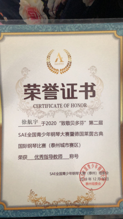 2019-9鋼琴比賽優(yōu)秀指導(dǎo)教師